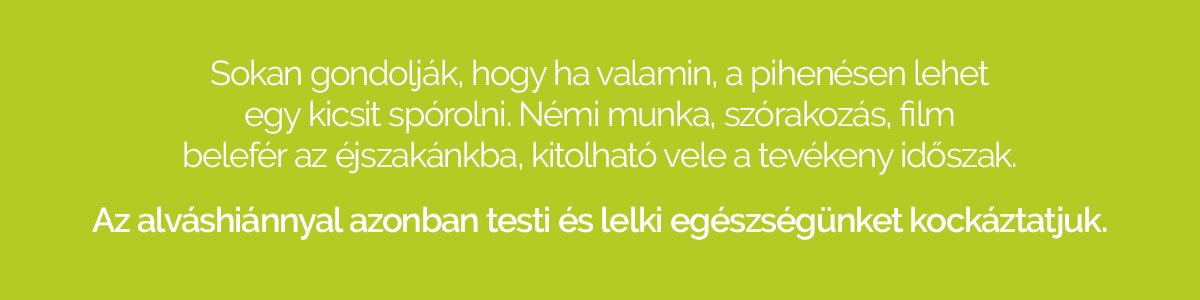 Tartós alváshiány hatására különböző testi és lelki betegségekkel nézhetünk szembe. Az alvás ugyanis épp olyan fontos szervezetünk számára, mint minden „ciklikus üzem”, a levegővételtől az evésig.
