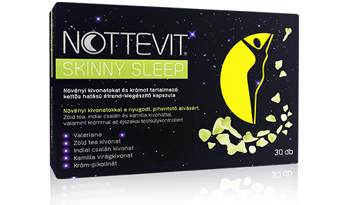 A Nottevit Skinny Sleep a természetes alvástámogatás és stresszoldás mellett az éjszakai testsúlykontrollt támogató összetevőket is tartalmaz. Ez az egyedülálló, kettős hatású termék a szervezet éjszakai megújító folyamatait – például az étvágyat szabályozó hormonok működését – segíti, emellett éjszakai zsírégető és testsúlycsökkentő összetevőket is tartalmaz.